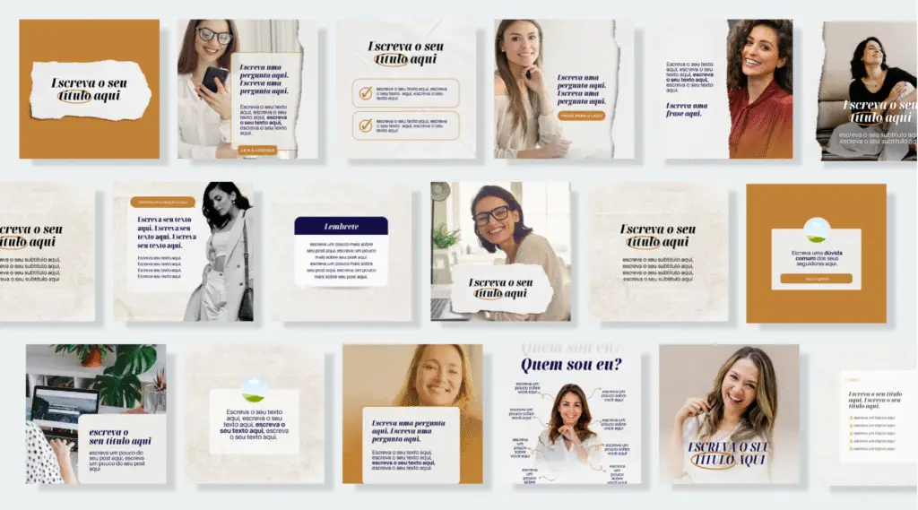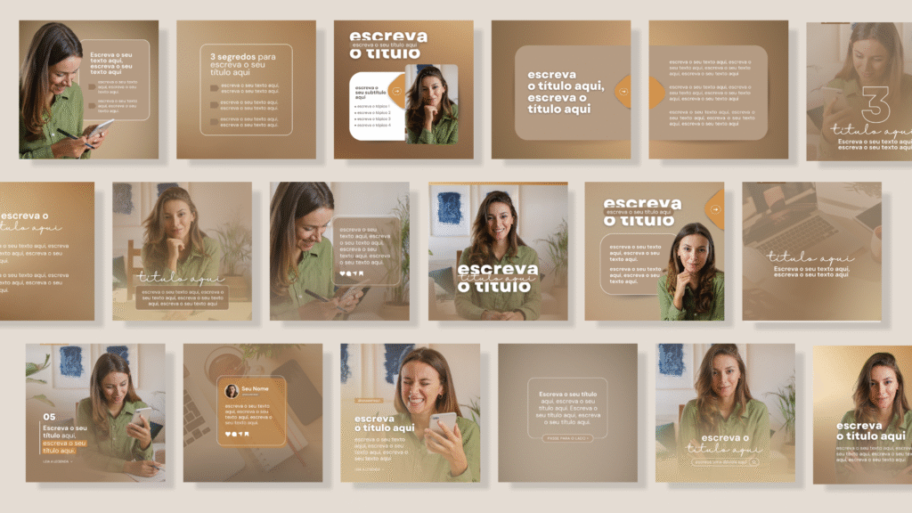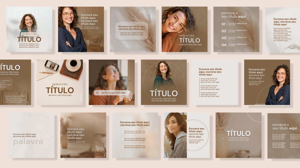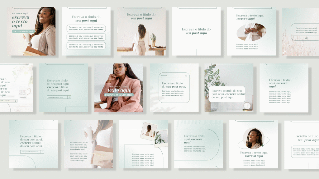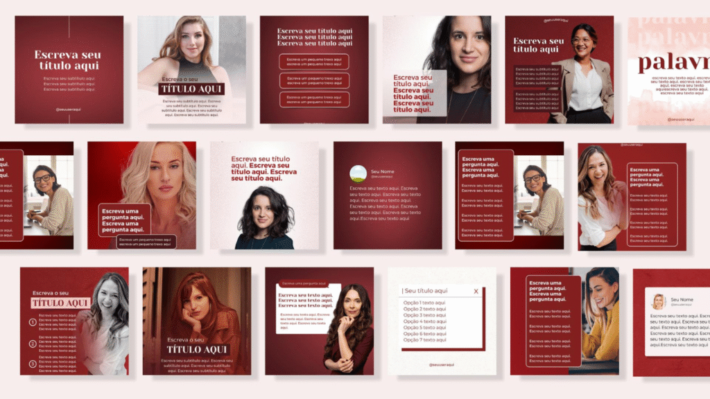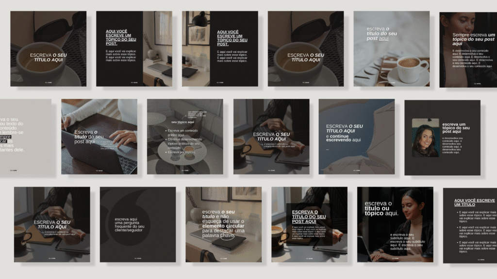 São mais de 60 modelos, projetados para elevar seu perfil a um nível superior, funcionando perfeitamente no Canva gratuito e cada um seguindo um padrão visual exclusivo.