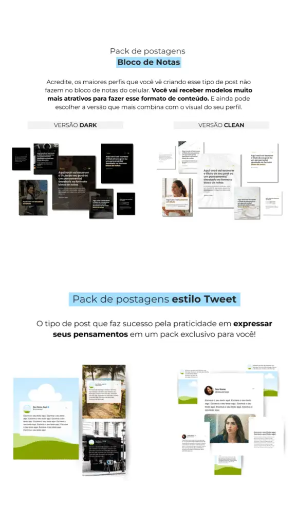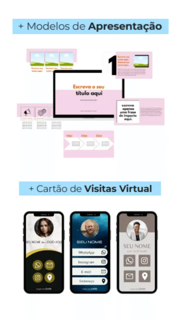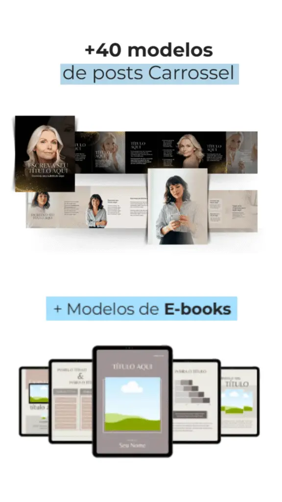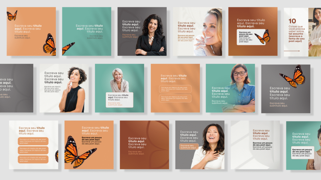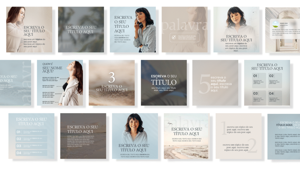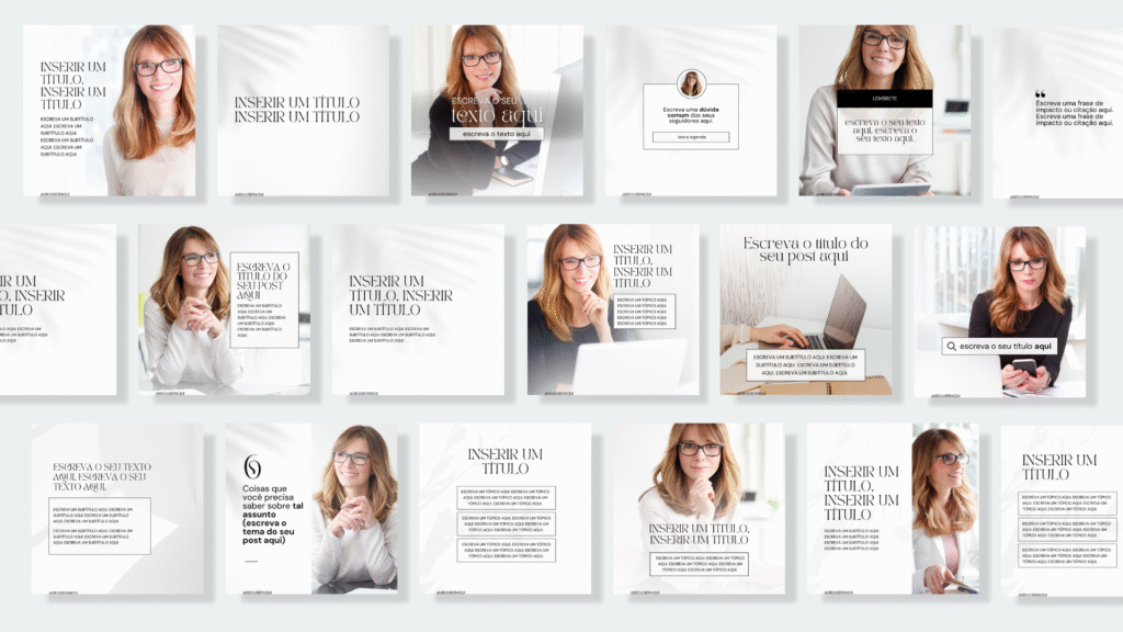 São mais de 60 modelos, projetados para elevar seu perfil a um nível superior, funcionando perfeitamente no Canva gratuito e cada um seguindo um padrão visual exclusivo.