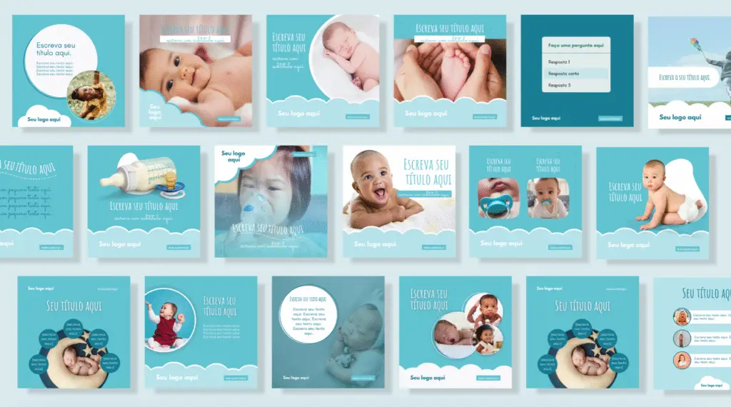 Você vai escolher a sua identidade visual e os seus modelos de posts favoritos. OBS.: vai poder usar todos os packs e modelos que quiser.