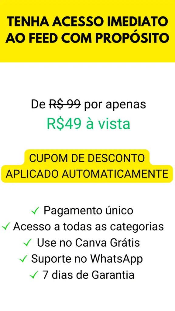 AEstudos de mercado confirmam que a estética visual é crucial para a percepção de valor. Com o Feed com PROPÓSITO, você transforma essa teoria em prática, criando um feed que atrai e converte.